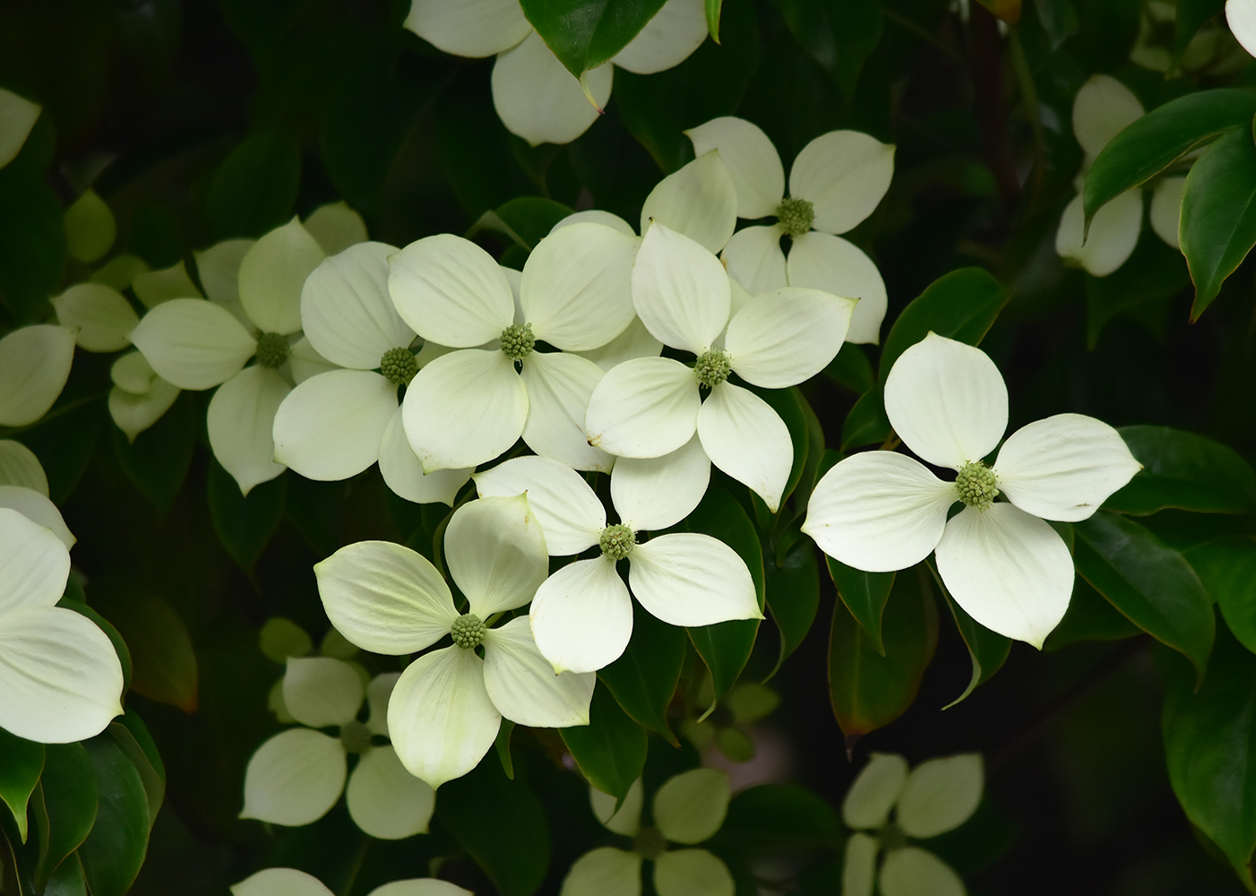 梅雨間近かの空気のなか、山法師の白い花が