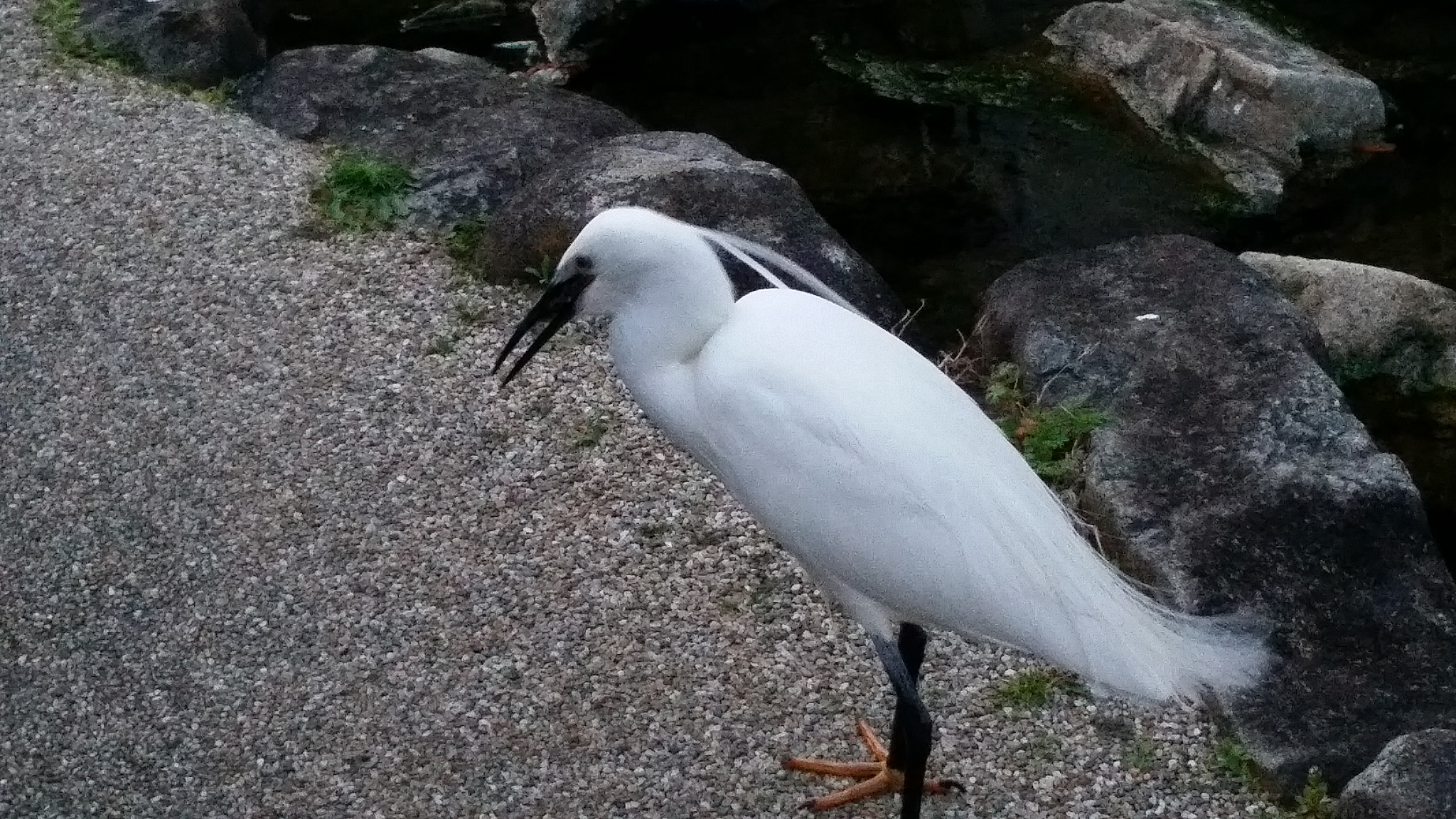 ↑ 飲み込んだ直後のコサギの喉はかすかに膨らんでいました